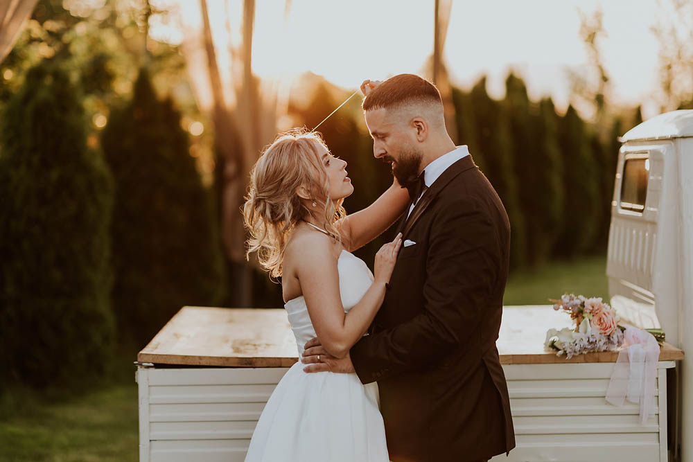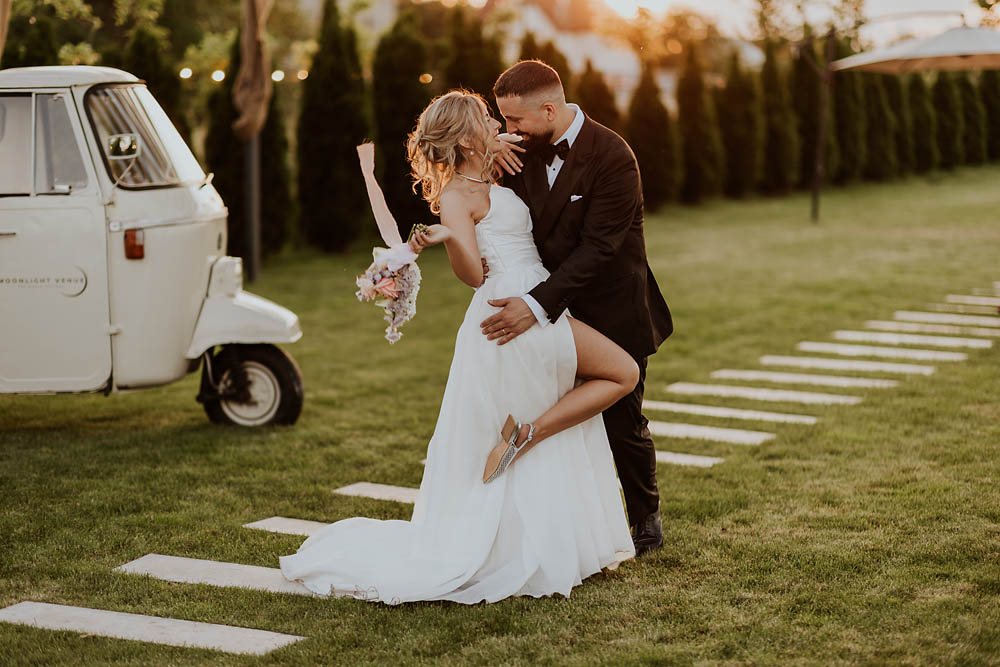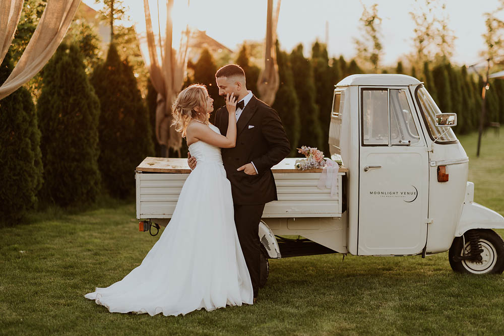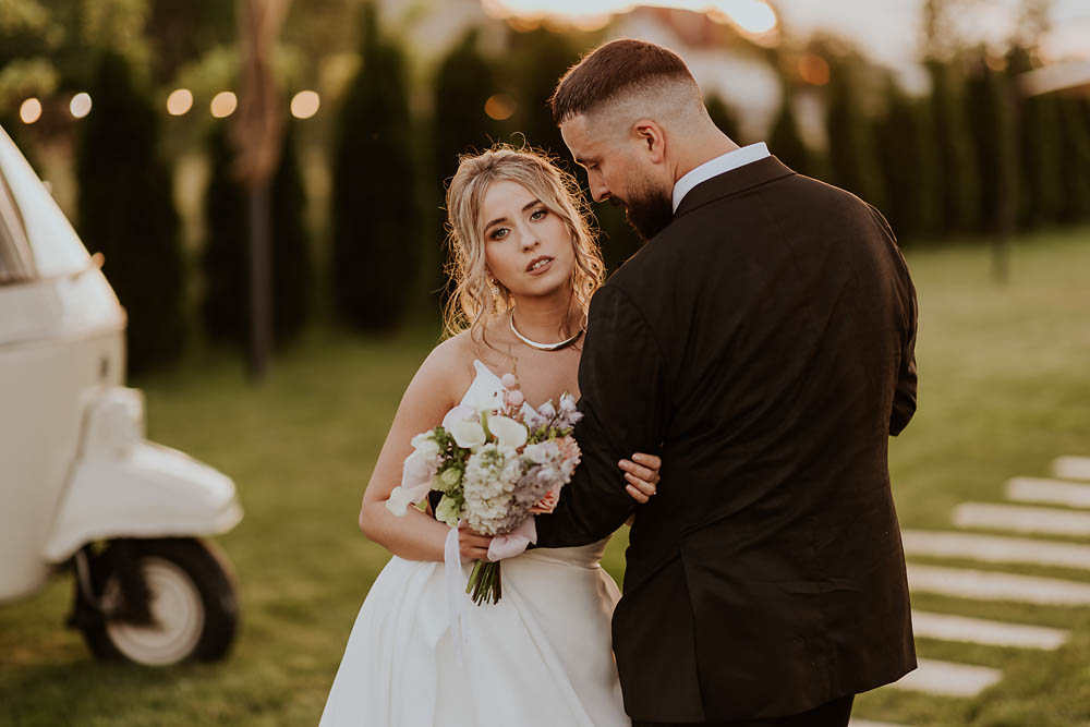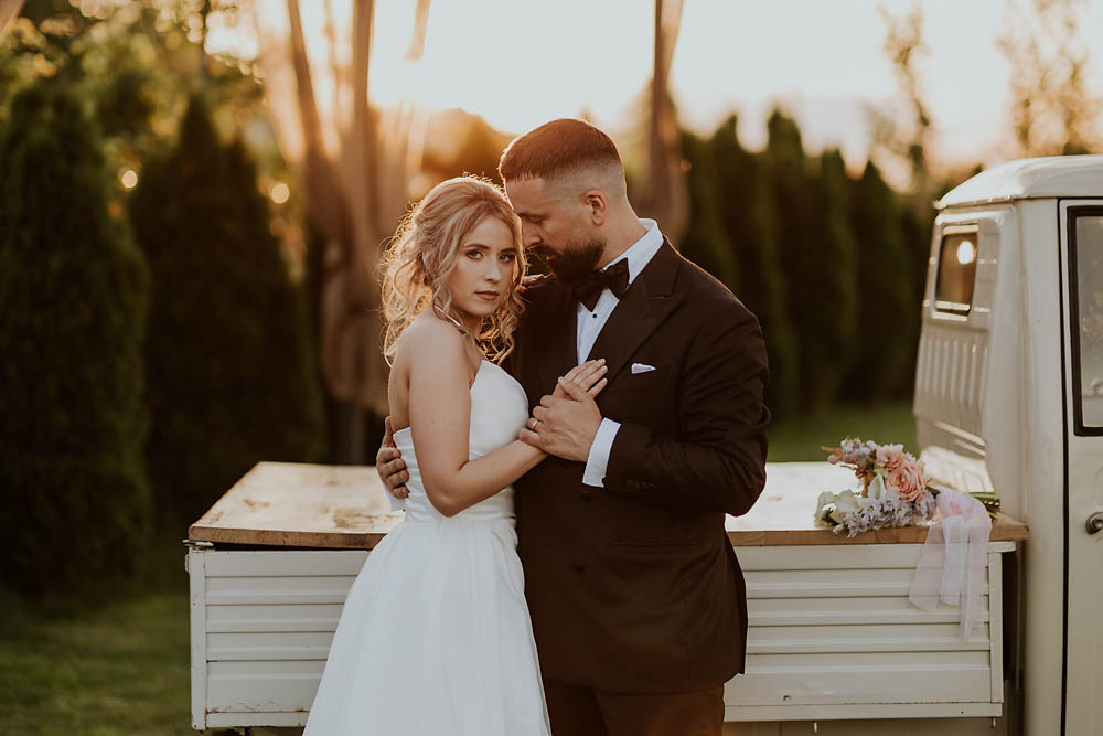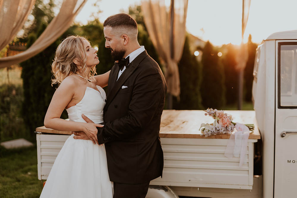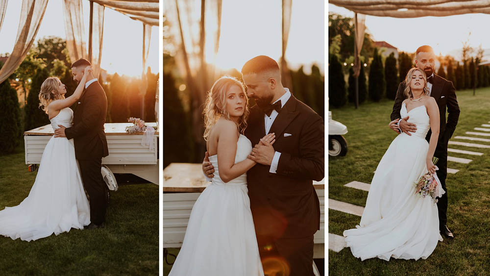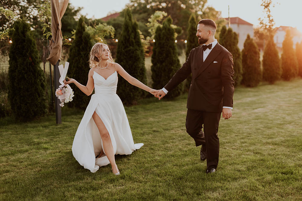 Andreea and Dorin’s wedding unfolded like a dream at a charming countryside venue in Romania, where rustic accents met delicate floral arrangements and golden sunset light poured gently over the horizon. As the evening began, the sky blushed in soft shades of gold and rose, wrapping the celebration in a warm, romantic glow. Andreea looked effortlessly radiant, her gown catching the last rays of sunlight, while Dorin’s quiet smile said everything about the love they share. Surrounded by family, laughter, and the gentle hum of summer air, their wedding day felt intimate, heartfelt, and beautifully timeless.