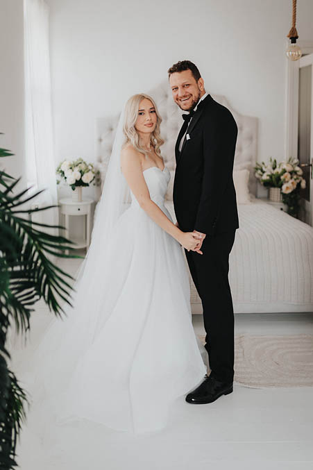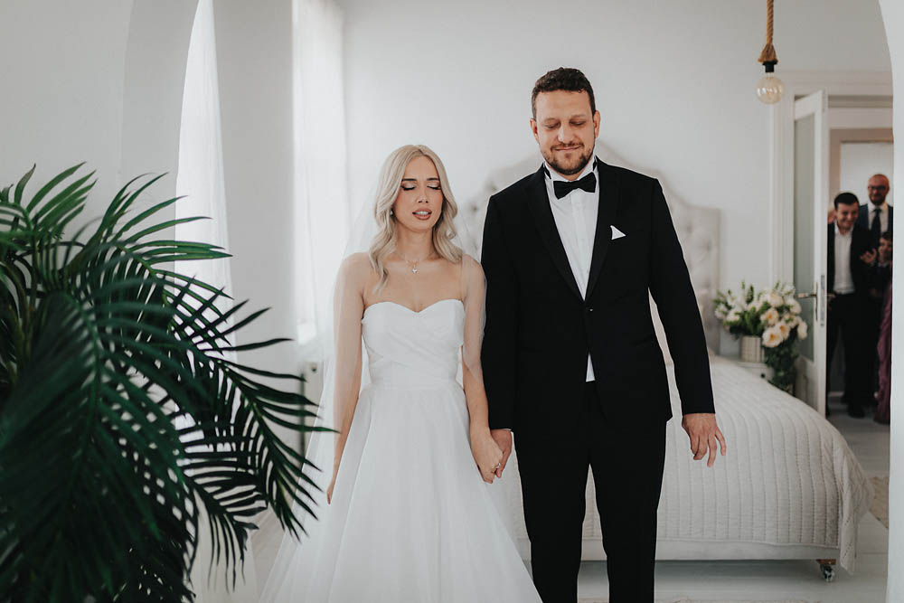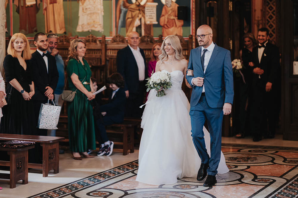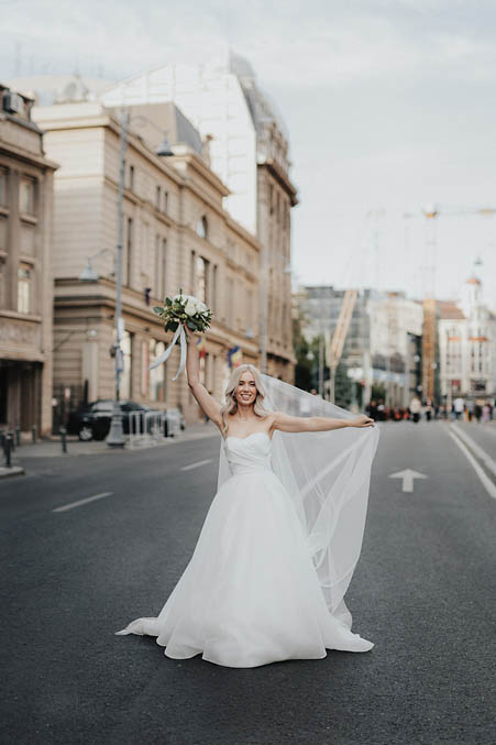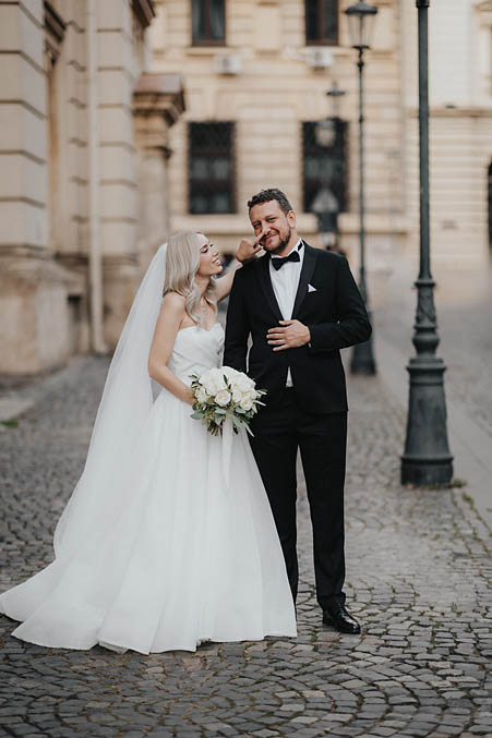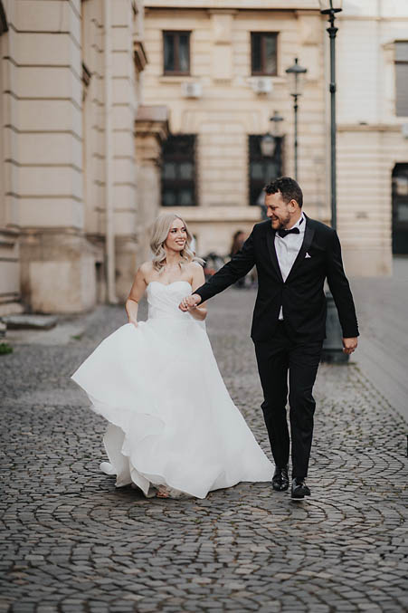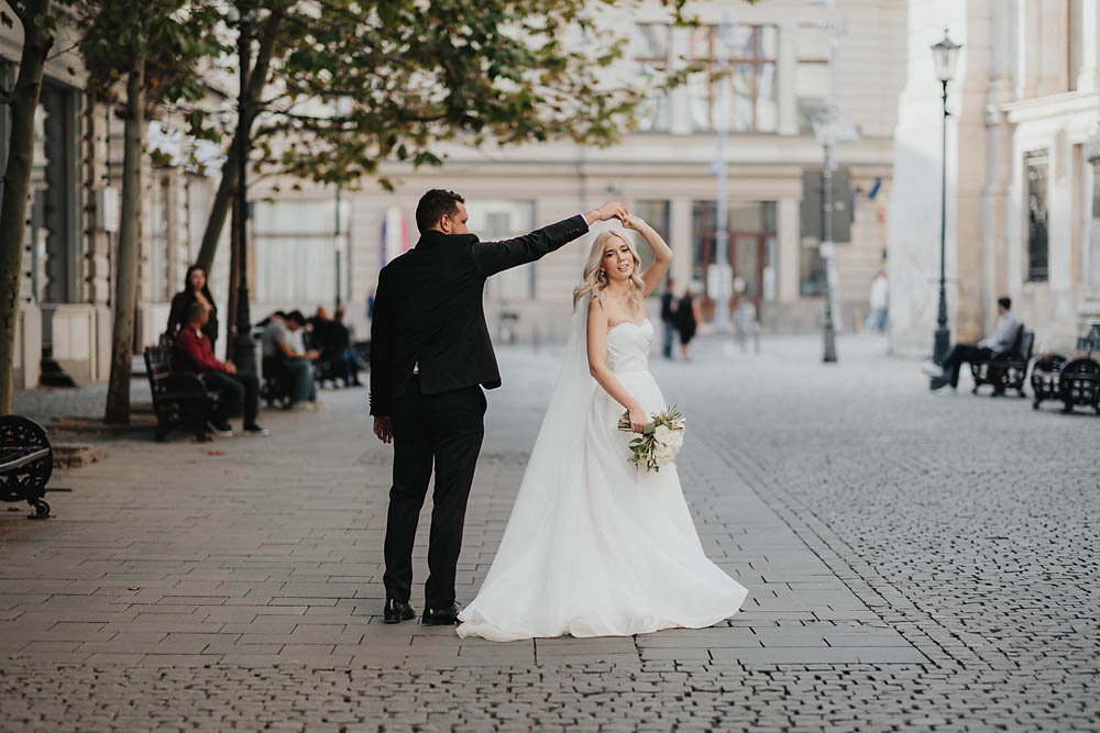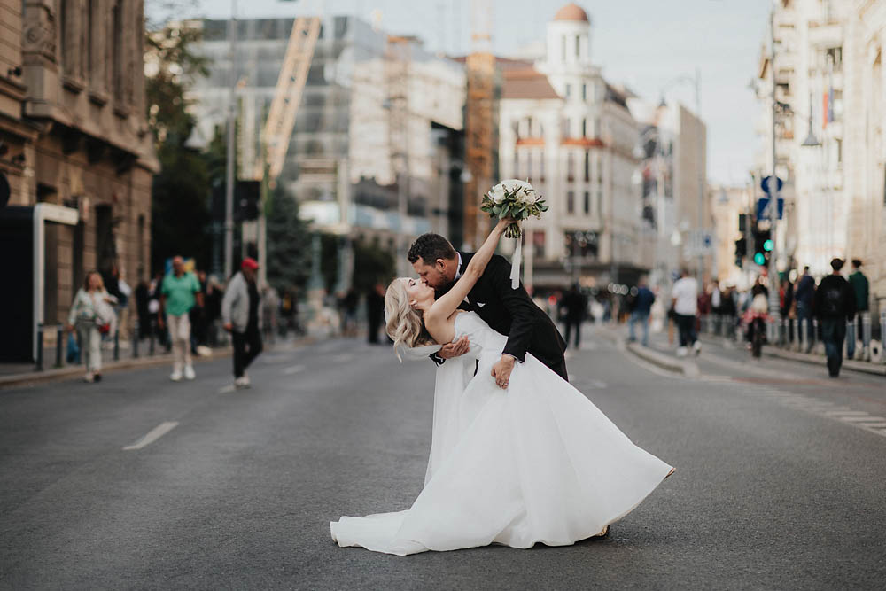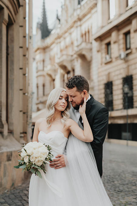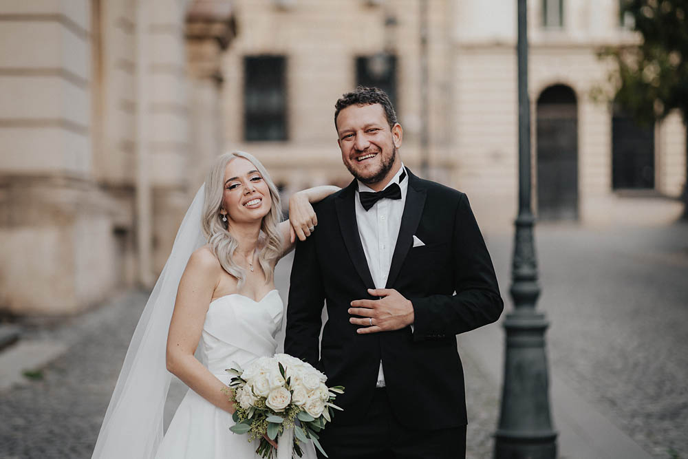 Carla and Theo celebrated their love in an intimate venue tucked away in the heart of Bucharest, where old-world charm met modern romance. As the sun began to set over the city, warm golden light streamed through tall windows and danced across the delicate florals and soft candle arrangements. With only their closest family and friends gathered around, every moment felt deeply personal and intentional. Carla was luminous, her smile glowing in the amber sunset, while Theo looked at her with a tenderness that made time seem to slow.