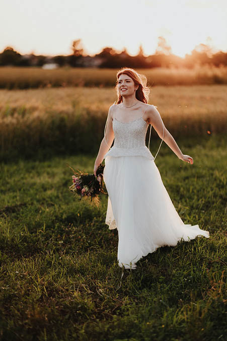 Daria and Alex’s barn wedding was the perfect blend of rustic charm and effortless romance. Set against open fields and rolling countryside, the wooden beams and soft drapery of the barn glowed in the golden light of sunset. As the sky shifted from honeyed tones to soft blush, laughter echoed through the warm timber space, and the scent of wildflowers filled the air.