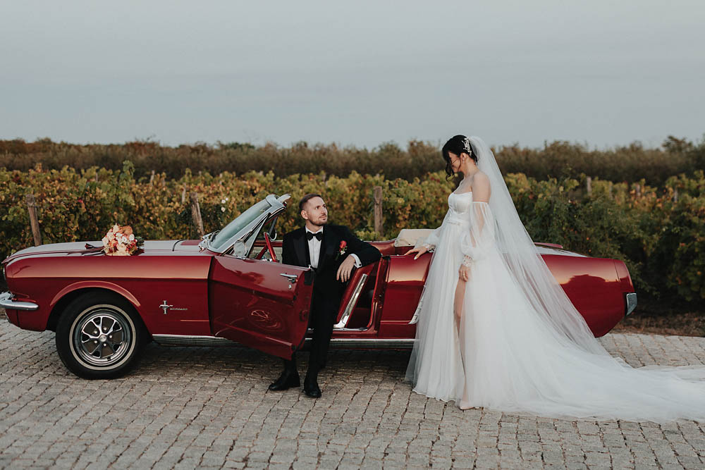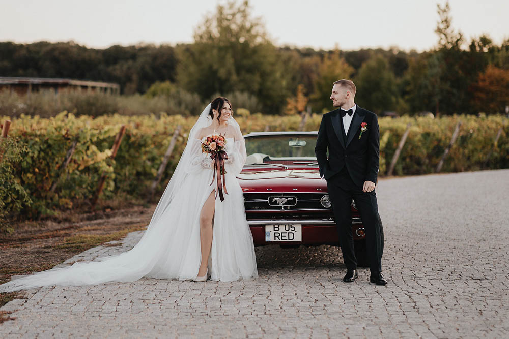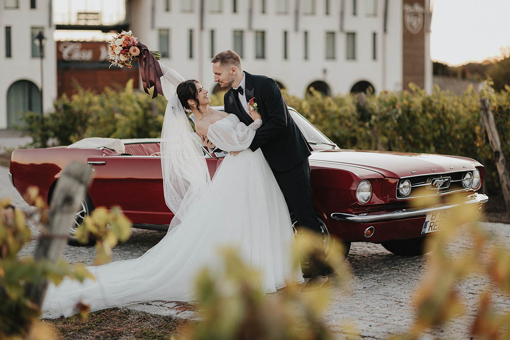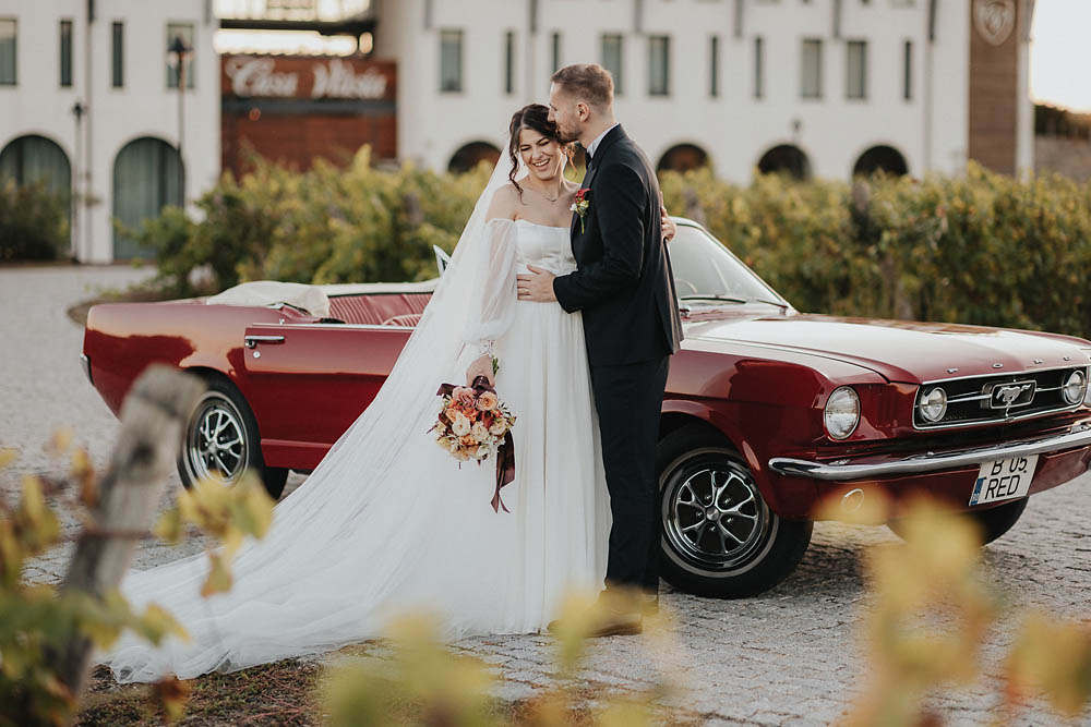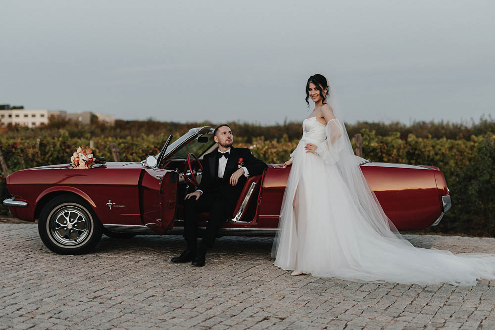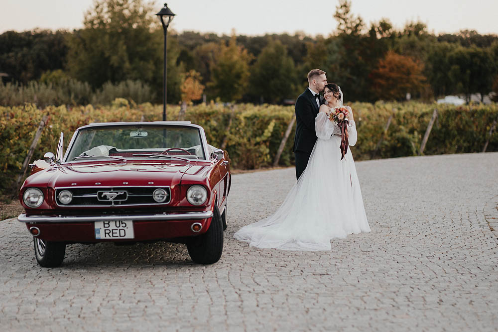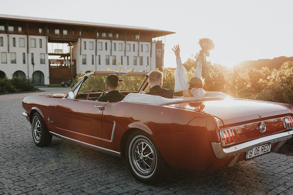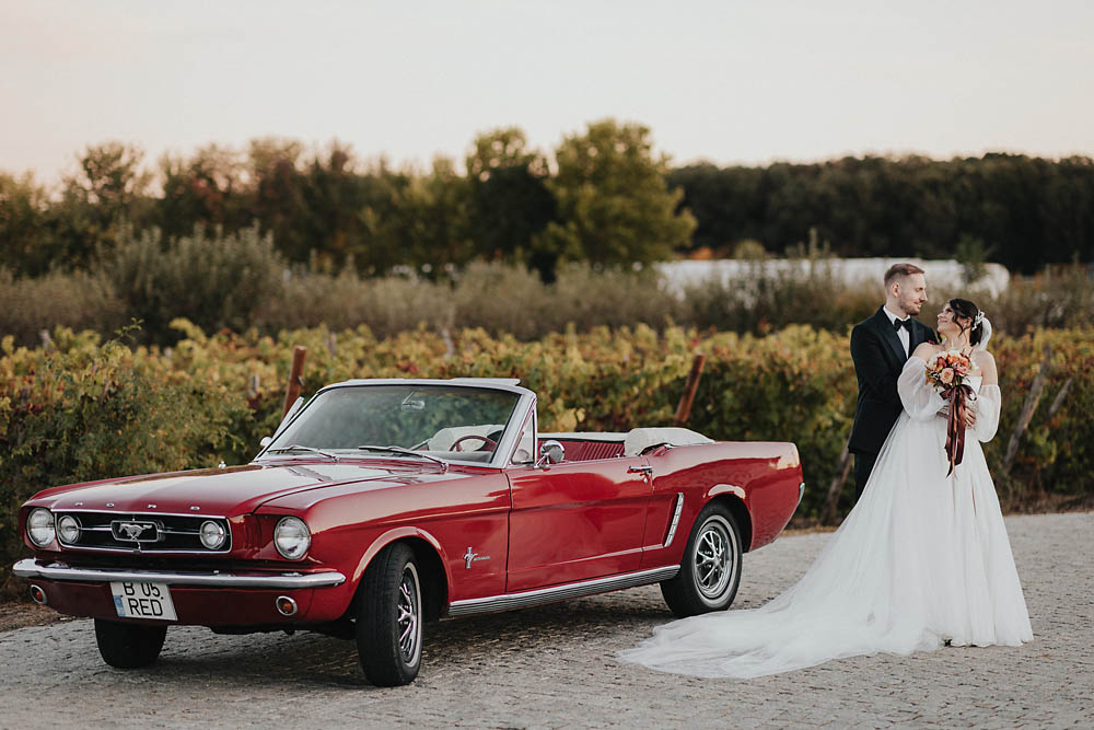 Oana and Jan’s vintage-inspired wedding unfolded near the edge of a quiet forest, where nature met timeless elegance. Soft lace details, antique décor, and warm golden light set the tone for a day that felt beautifully nostalgic. As the sun filtered through the trees, Oana looked effortlessly graceful, while Jan’s classic style perfectly echoed the old-soul romance of the celebration. Parked nearby, their red 70s Mustang added the boldest touch — a statement of freedom, adventure, and unforgettable style.