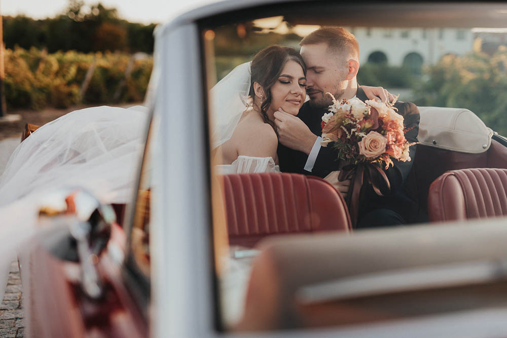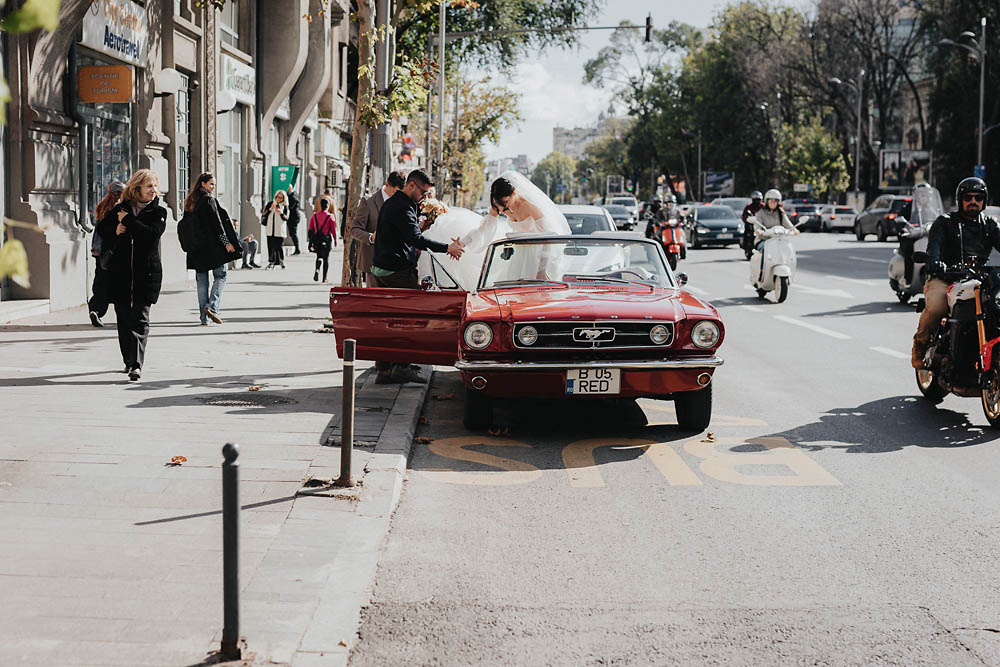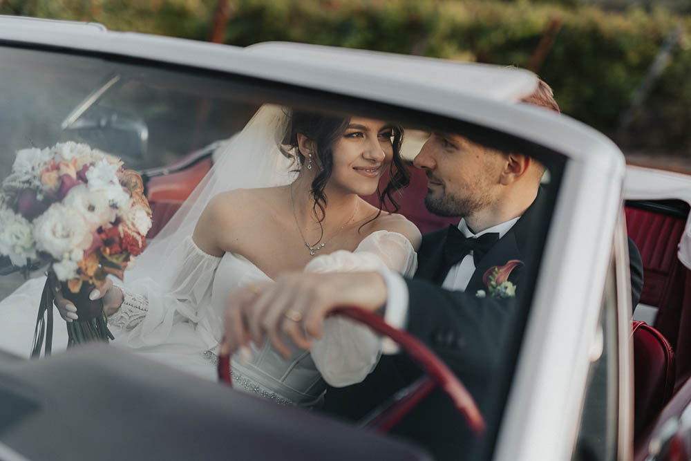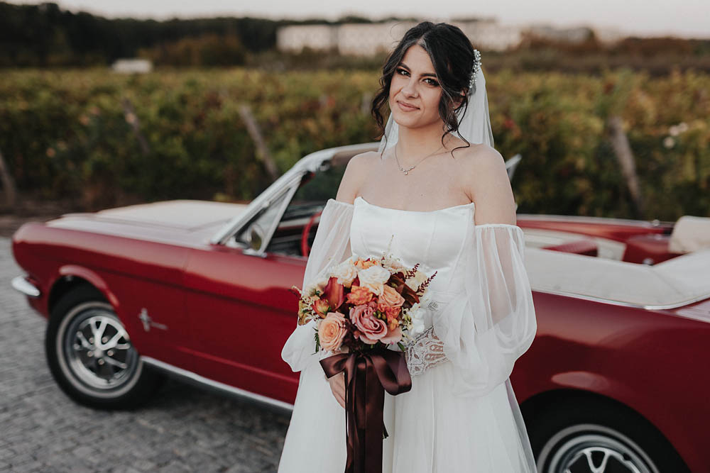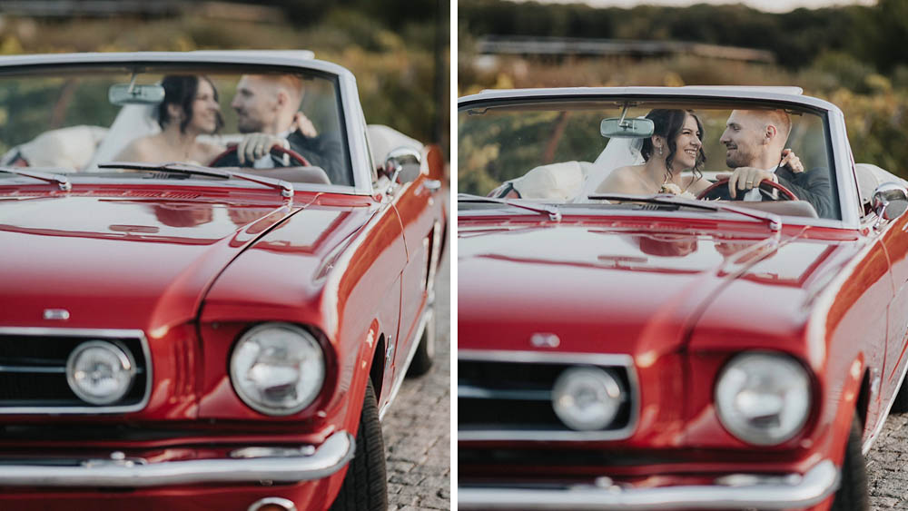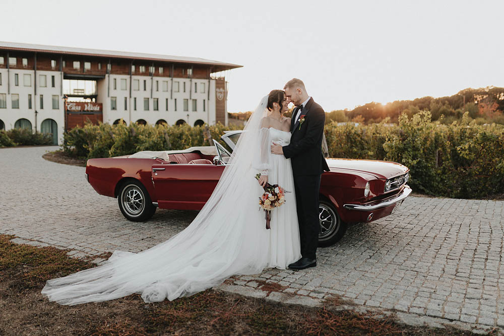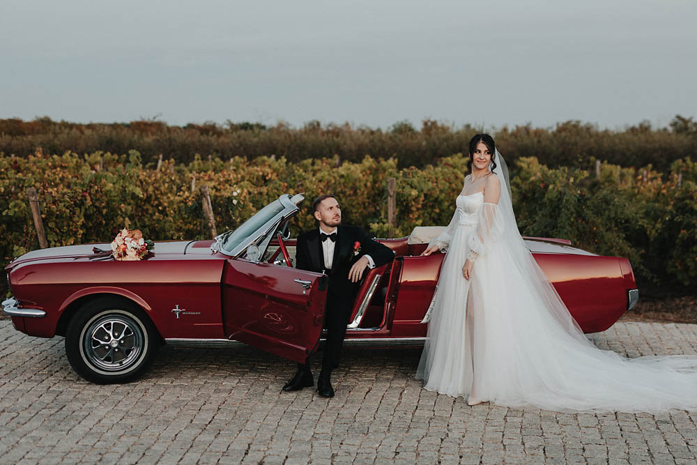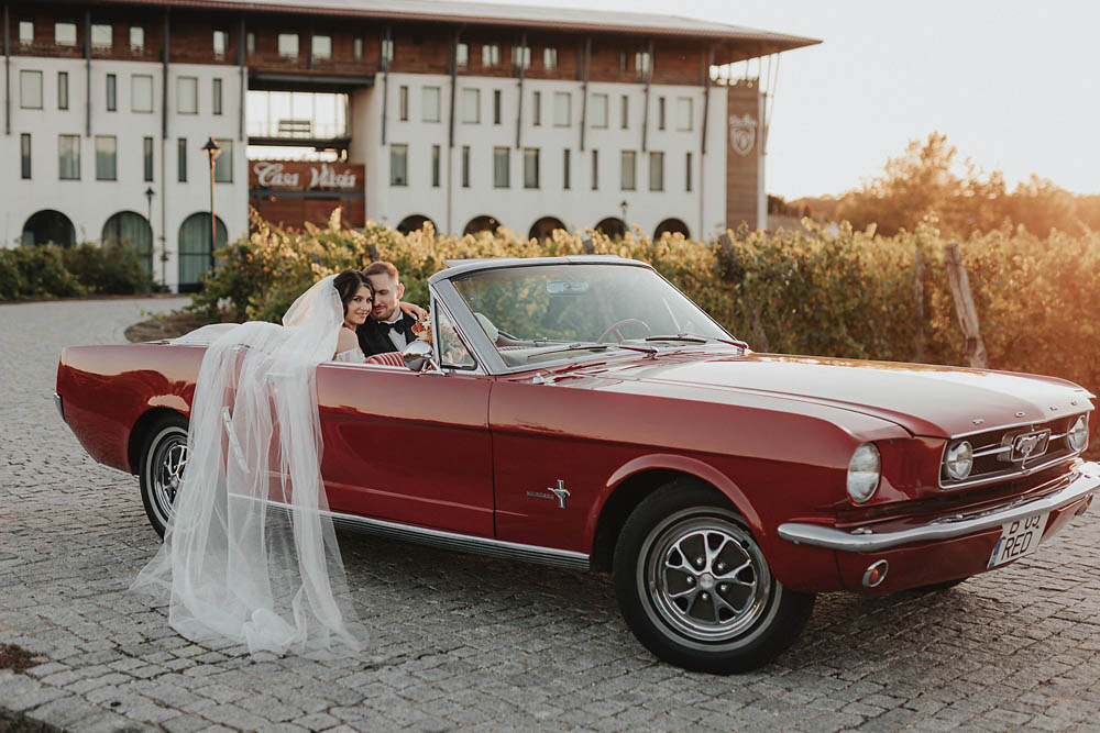 Oana and Jan’s vintage-inspired wedding unfolded near the edge of a quiet forest, where nature met timeless elegance. Soft lace details, antique décor, and warm golden light set the tone for a day that felt beautifully nostalgic. As the sun filtered through the trees, Oana looked effortlessly graceful, while Jan’s classic style perfectly echoed the old-soul romance of the celebration. Parked nearby, their red 70s Mustang added the boldest touch — a statement of freedom, adventure, and unforgettable style.